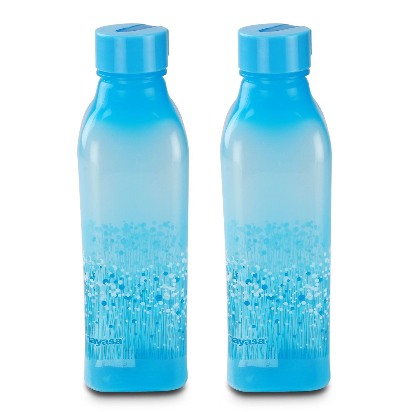 Deluxe Square Plastic Bottle, Set of 2, 1000 ml - Blue