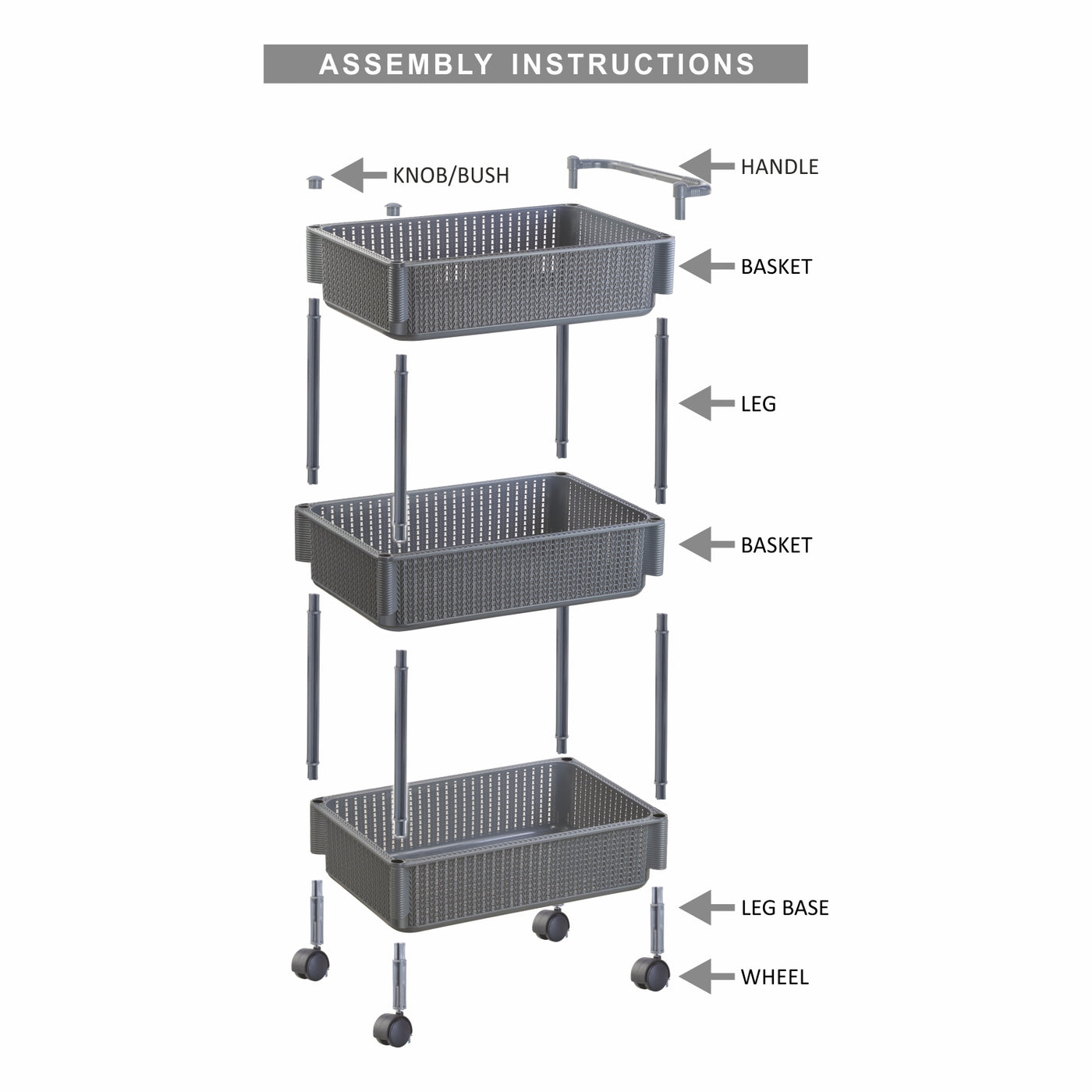3-Tier Storage: Spacious baskets provide ample storage for kitchen, bathroom, or living room items.