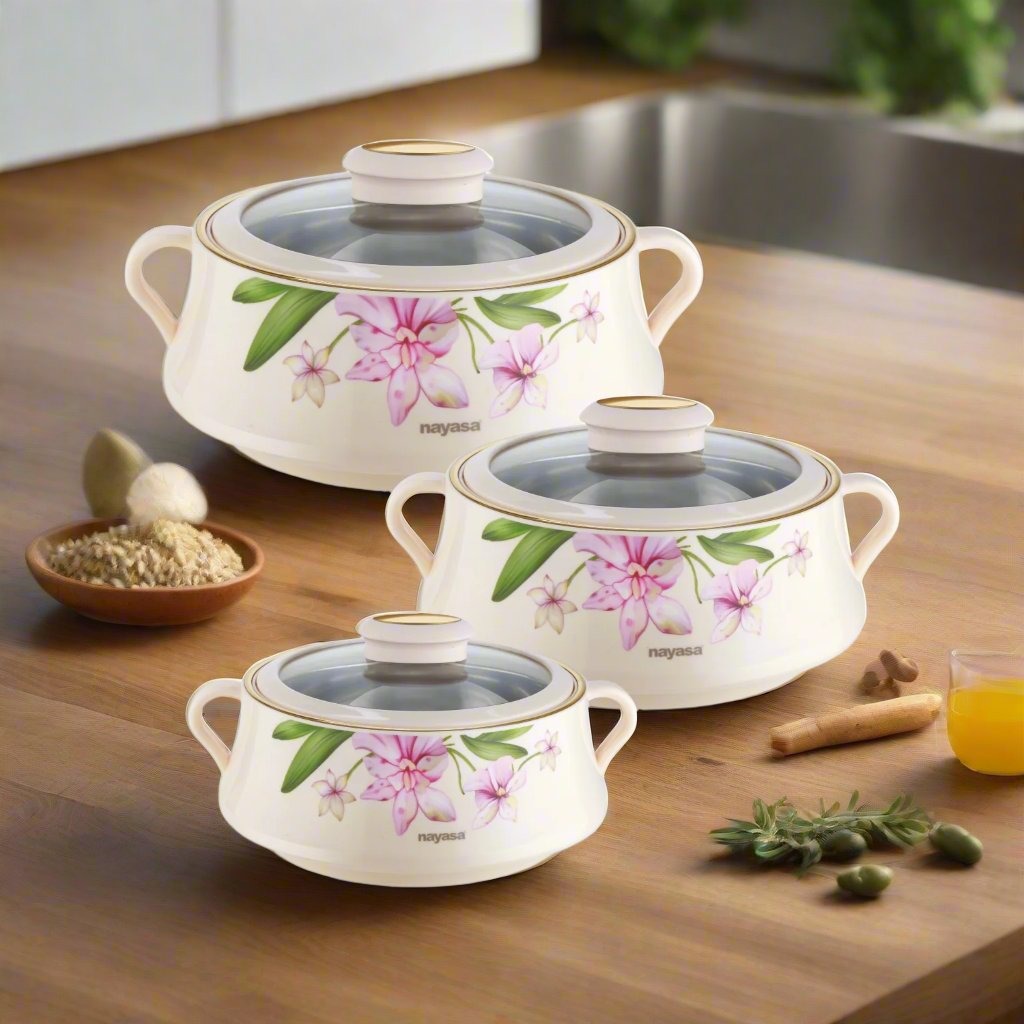 Lorenzo Glass Lid Casserole Set of 3, 500ml, 1000ml, 1500ml
