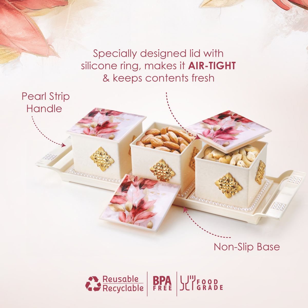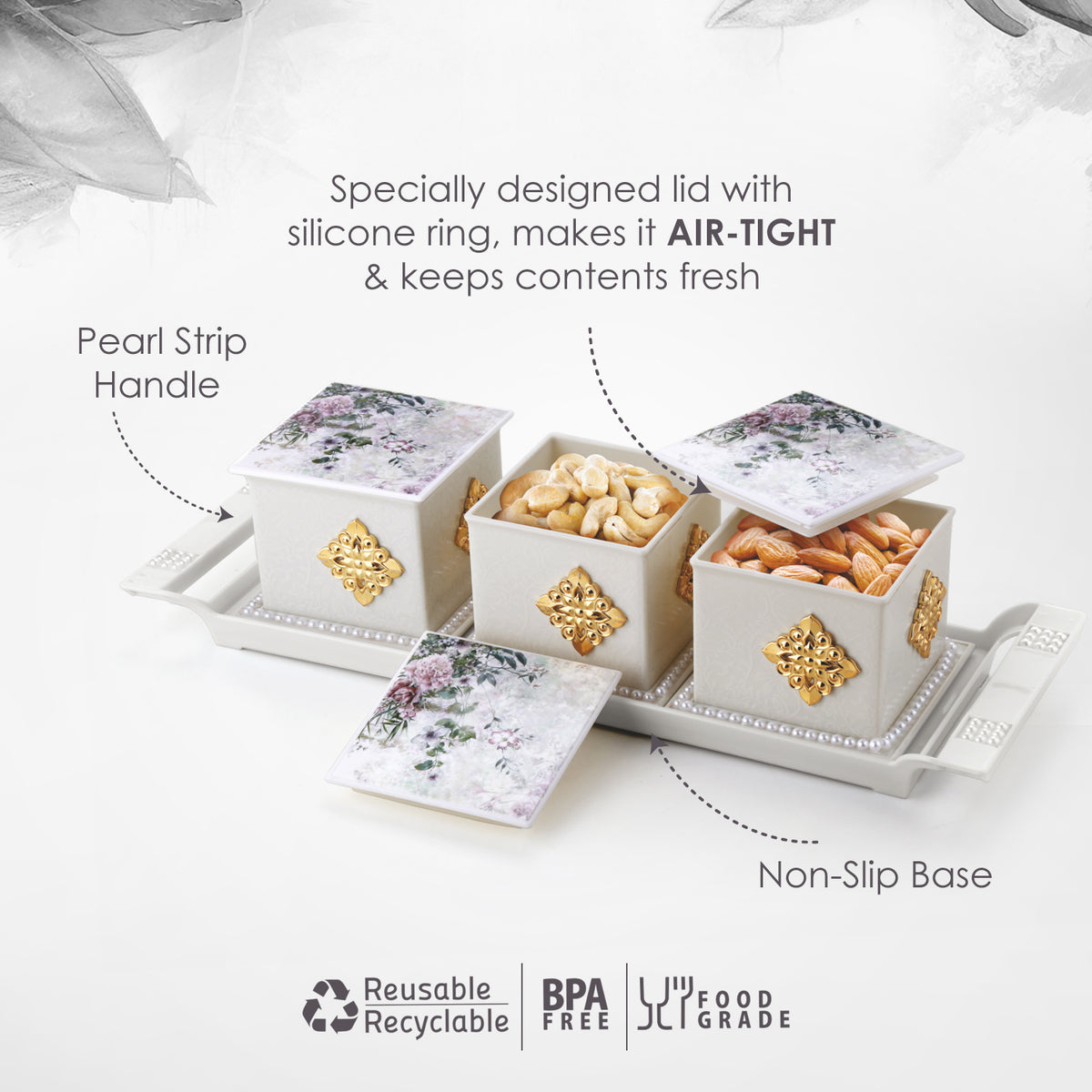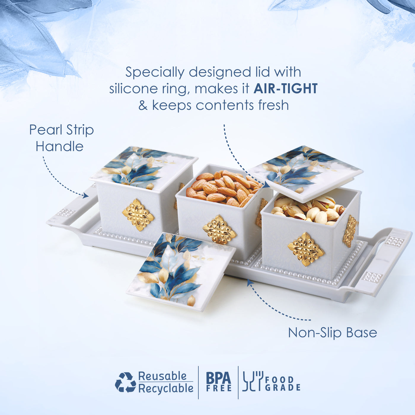 Bring elegance and functionality to your table with the Nayasa Pear Dry Fruit Set. Designed with style and convenience in mind, this beautiful set is perfect for serving dry fruits, snacks, and sweets while keeping them fresh and organized. Ideal for everyday use or festive gifting.