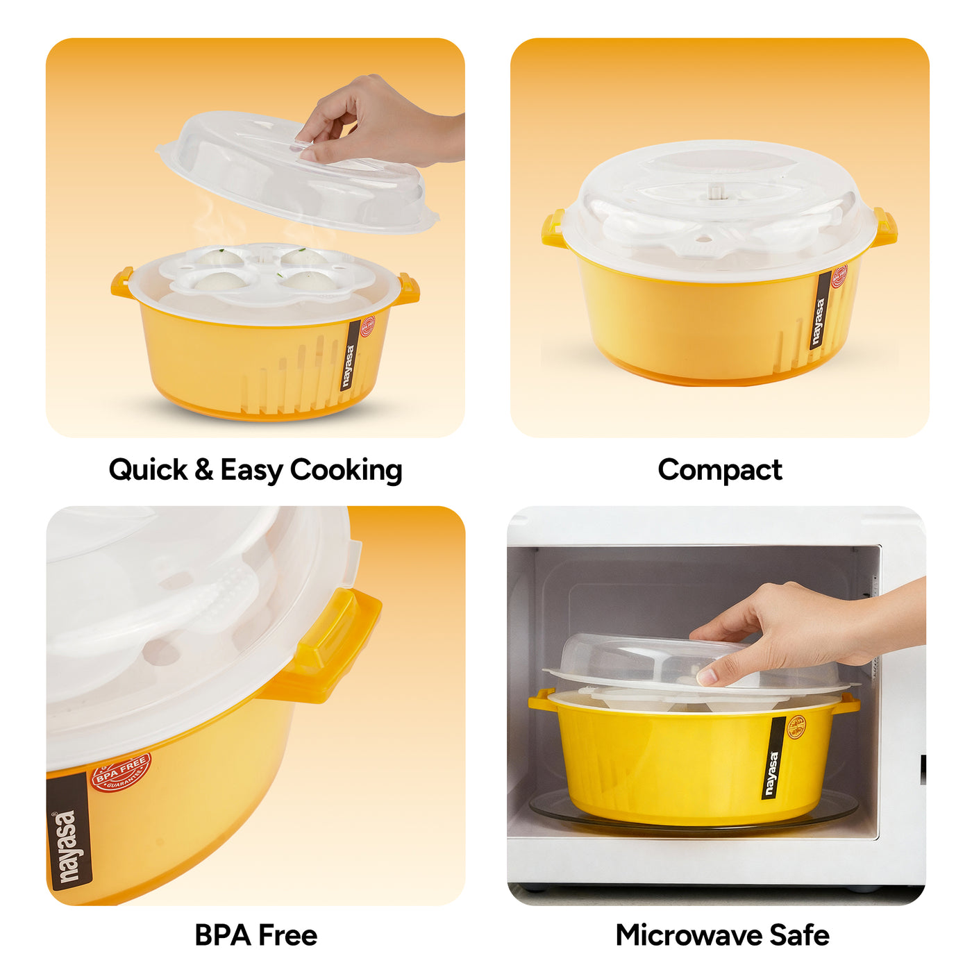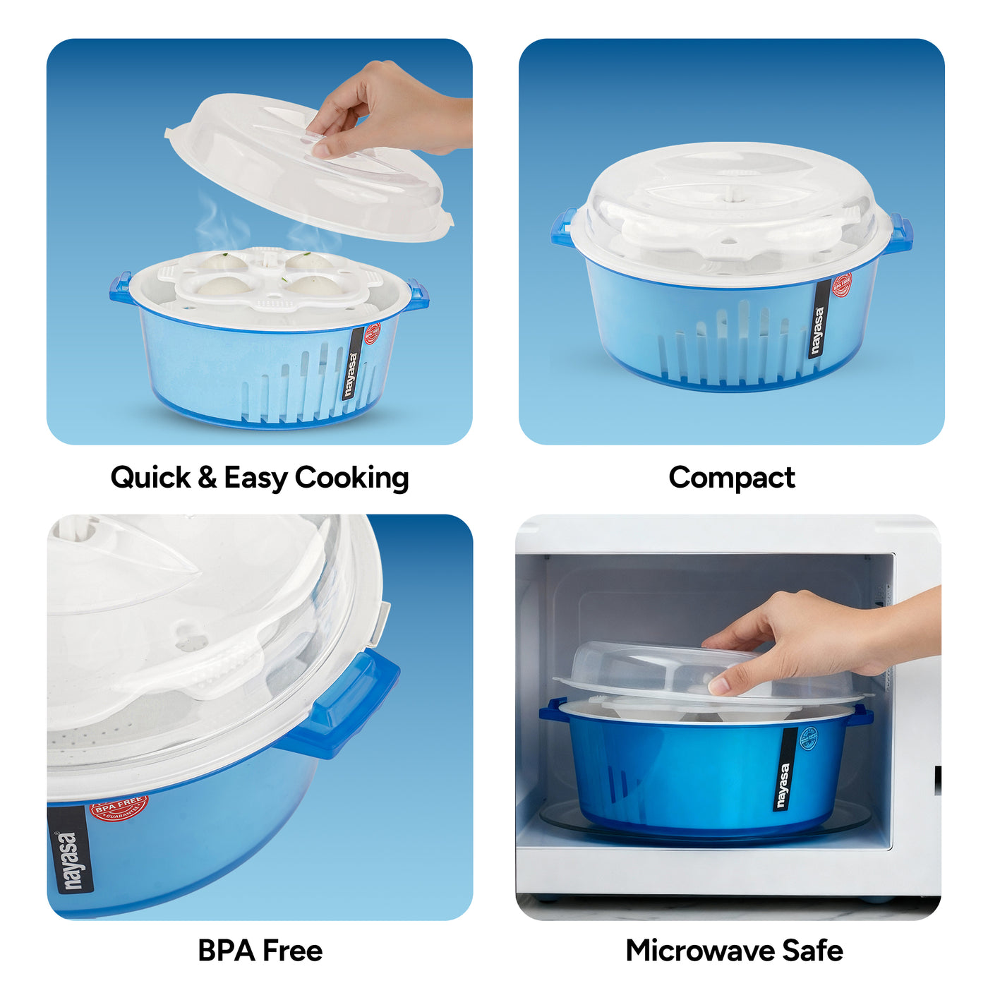 The Nayasa 4-in-1 Plastic Microwave Safe Idli Maker, Steamer, Strainer, and Cooker is a versatile kitchen essential designed to simplify meal preparation. Crafted from high-quality, food-grade plastic, this multifunctional tool is both durable and microwave-safe, ensuring safe and efficient cooking. With its unique design, you can steam fluffy idlis, strain excess water from cooked ingredients, and steam vegetables or dumplings—all in one compact appliance.