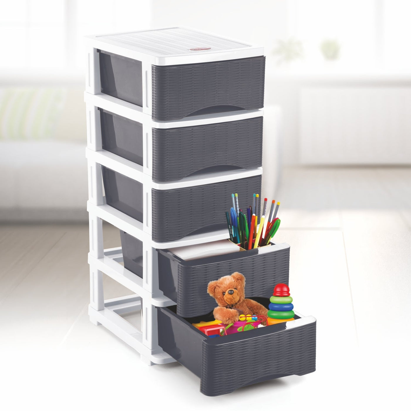 The Nayasa Tuckins is a versatile and durable multi-purpose storage organizer designed to help you declutter and efficiently organize any space. Crafted from high-quality, precision-engineered plastic, it offers a sturdy build and aesthetic design that complements any home or office décor. With easy-to-assemble drawers and a modular structure, it provides a practical solution for storing toys, tools, office supplies, and more.
