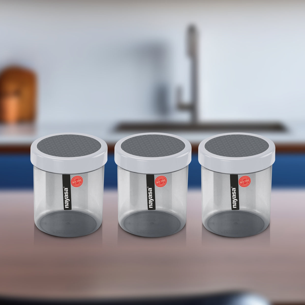 Retro-style BPA-free containers with airtight lids. Clear, stackable, and ideal for kitchen staples like grains, pulses, and snacks.