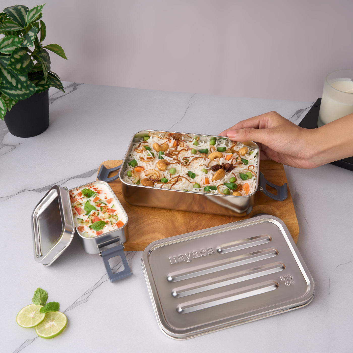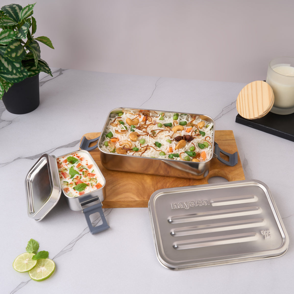 The Nayasa Zion Lunch Box is a premium stainless-steel storage solution with a polished mirror finish that adds elegance to your kitchen. Constructed from food-grade stainless steel, it delivers strength, durability, and long-lasting performance. The rectangular clip-tiffin design provides organized storage space for snacks, dry fruits, chocolates, biscuits, and more, while keeping contents fresh. Easy to clean and maintain, the Zion Lunch Box blends style with practicality for everyday use and gifting.