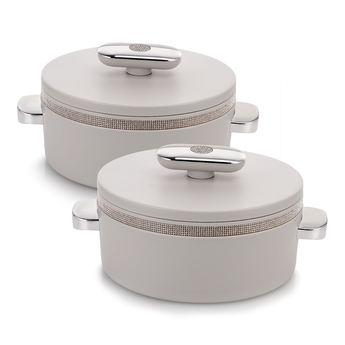 Add elegance and warmth to your dining experience with the Nayasa Sapphire Casserole Twin Set of 1500ml. Designed with a stunning floral print and golden finish, it combines style with performance. The double-walled insulation keeps food hot and fresh for hours. Made from BPA-free, food-grade plastic, it ensures safety, durability, and convenience.