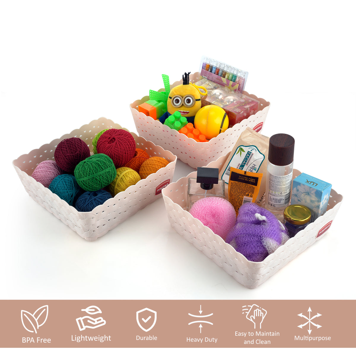 The Nayasa Plastic Ocean Basket offers stylish and practical storage with its easy-carry handle and ventilated design. Made from durable plastic, it’s perfect for fruits, vegetables, or other essentials in kitchens, offices, or shelves.