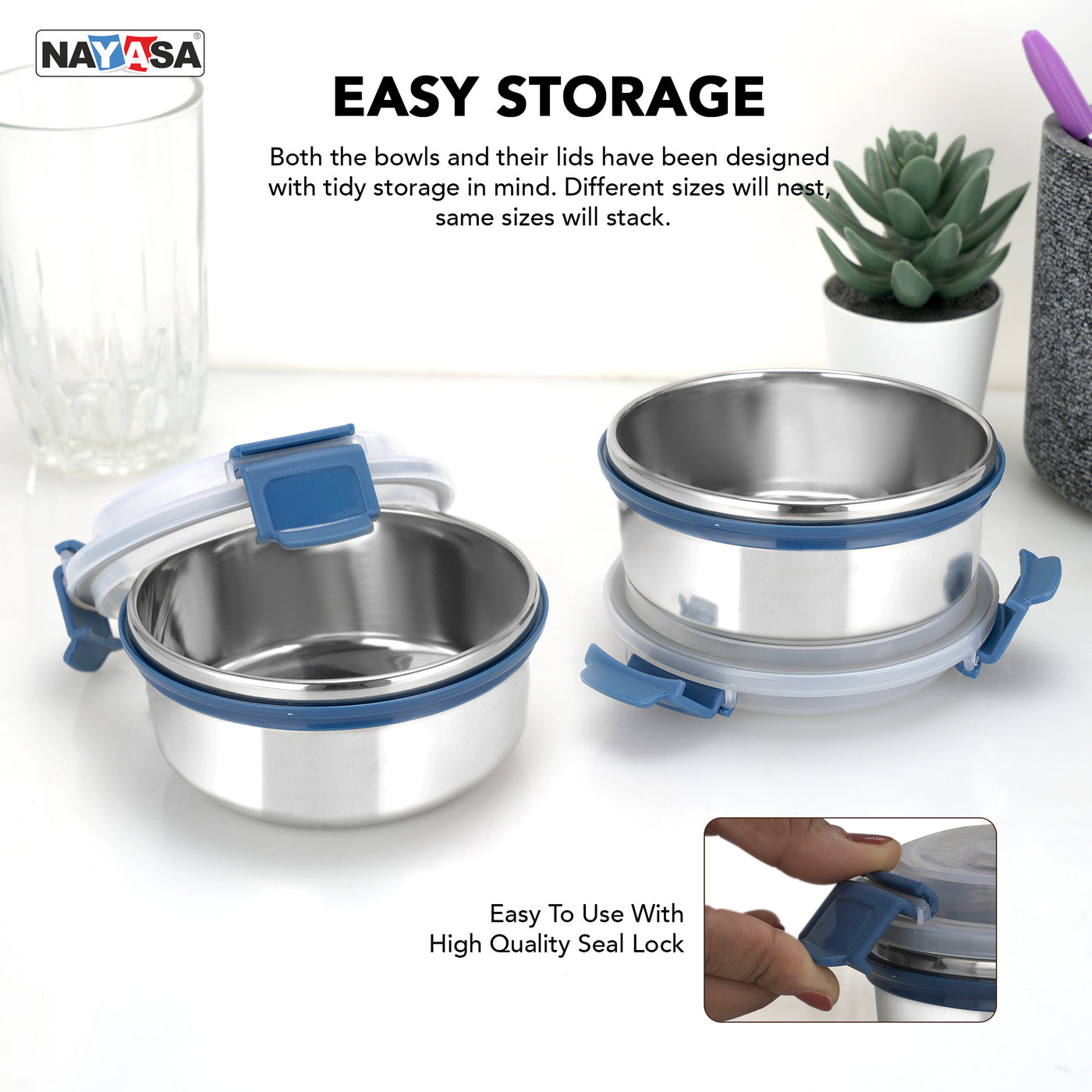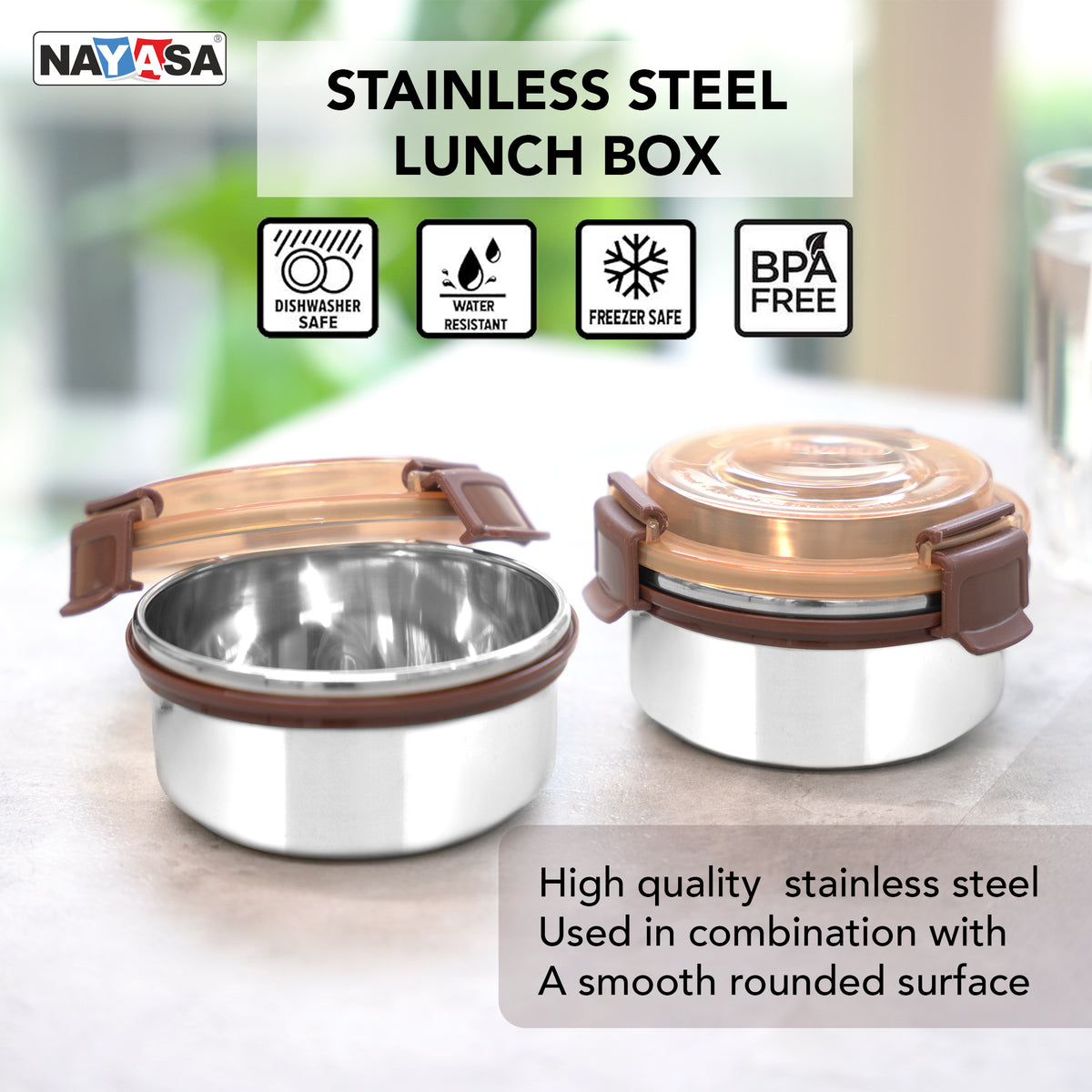 Aqua Lock Round Lunch Box is crafted with stainless steel and a silicon-sealed lid for freshness. Perfect for offices, schools, or picnics, ensuring spill-free and hygienic storage. Key Features: Stainless Steel Build: Durable and food-safe for daily use.