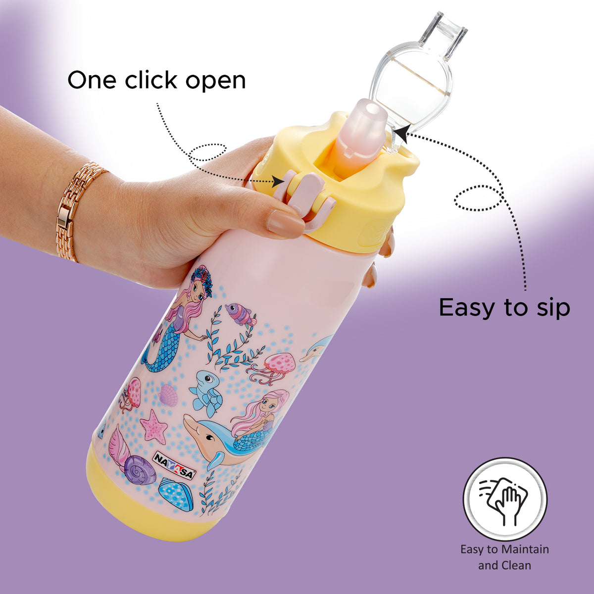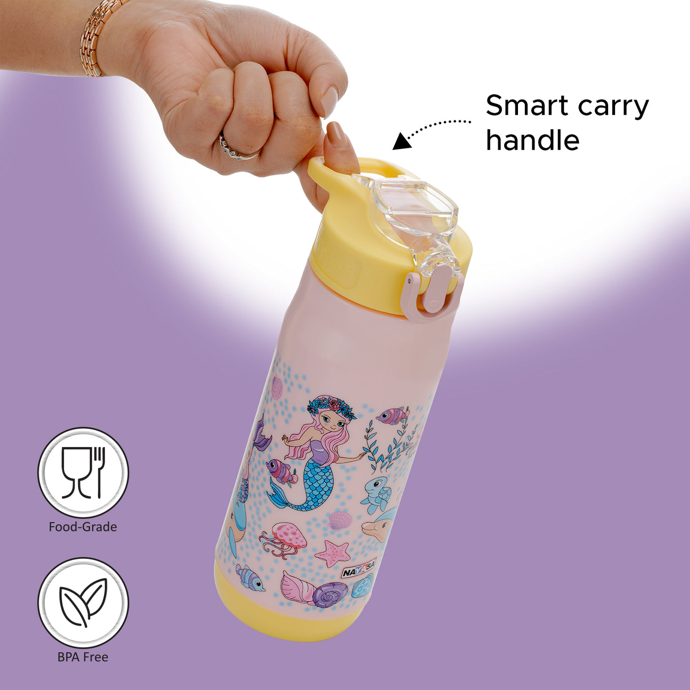 Nayasa Awesome Water Bottle – BPA-Free, Leak-Proof & Travel-Friendly Upgrade your hydration experience with the Nayasa Awesome Water Bottle, crafted from premium BPA-free plastic for safe and long-lasting use. Designed with a push-button cap and covered spout, this bottle ensures a leak-proof seal, preventing spills and making it perfect for everyday use. Ideal for school kids, travel, and daily activities, its lightweight and ergonomic design allows for easy carrying. The stylish lid enhances comfort, safety, and convenience, making it the perfect companion for an active lifestyle. Stay hydrated effortlessly with Nayasa Awesome!