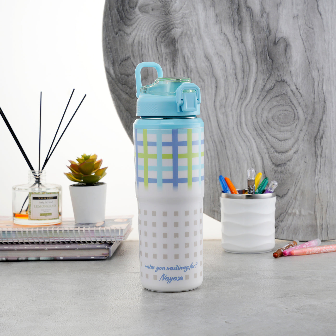 Stay hydrated in style with the Nayasa Duo-Sip Insulated Water Bottle perfect for school, travel, or home. Designed with dual drink options, kids can sip through the straw or pour and drink as they like. Made with a BPA-free plastic outer body and stainless-steel insulated inner, it keeps beverages fresh and maintains temperature longer. With a secure flip-top lid, easy-carry handle, and trendy printed design, it’s both functional and fun for everyday use.