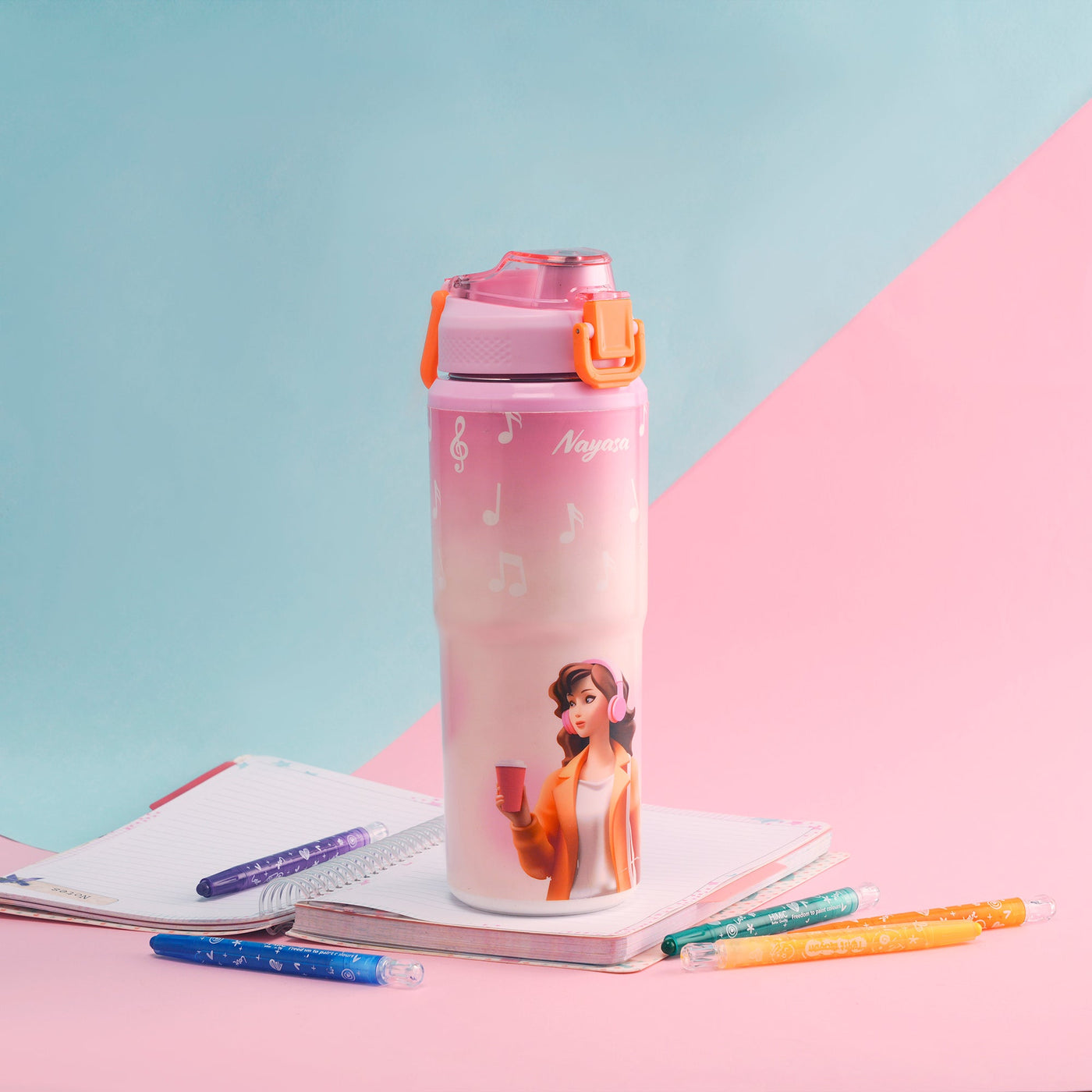 Keep kids hydrated on the go with the Nayasa Duo-Sip Insulated Water Bottle. Perfect for school, travel, or home, it offers two drinking options sip through the straw or pour and drink. The durable BPA-free outer body and insulated stainless steel interior keep drinks fresh for longer. With a secure flip-top lid and easy-carry handle, it’s convenient, hygienic, and stylish. Fun printed designs make it ideal for both boys and girls.