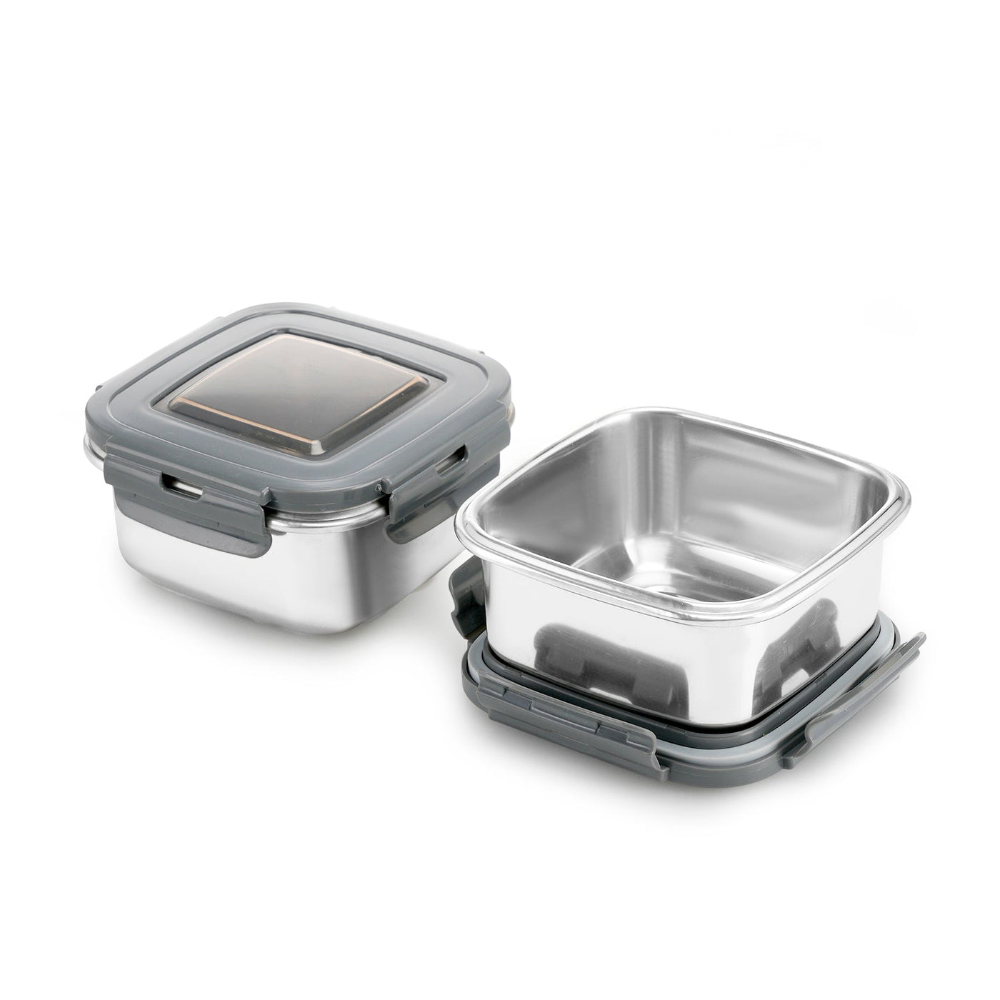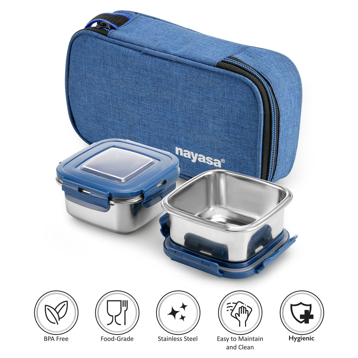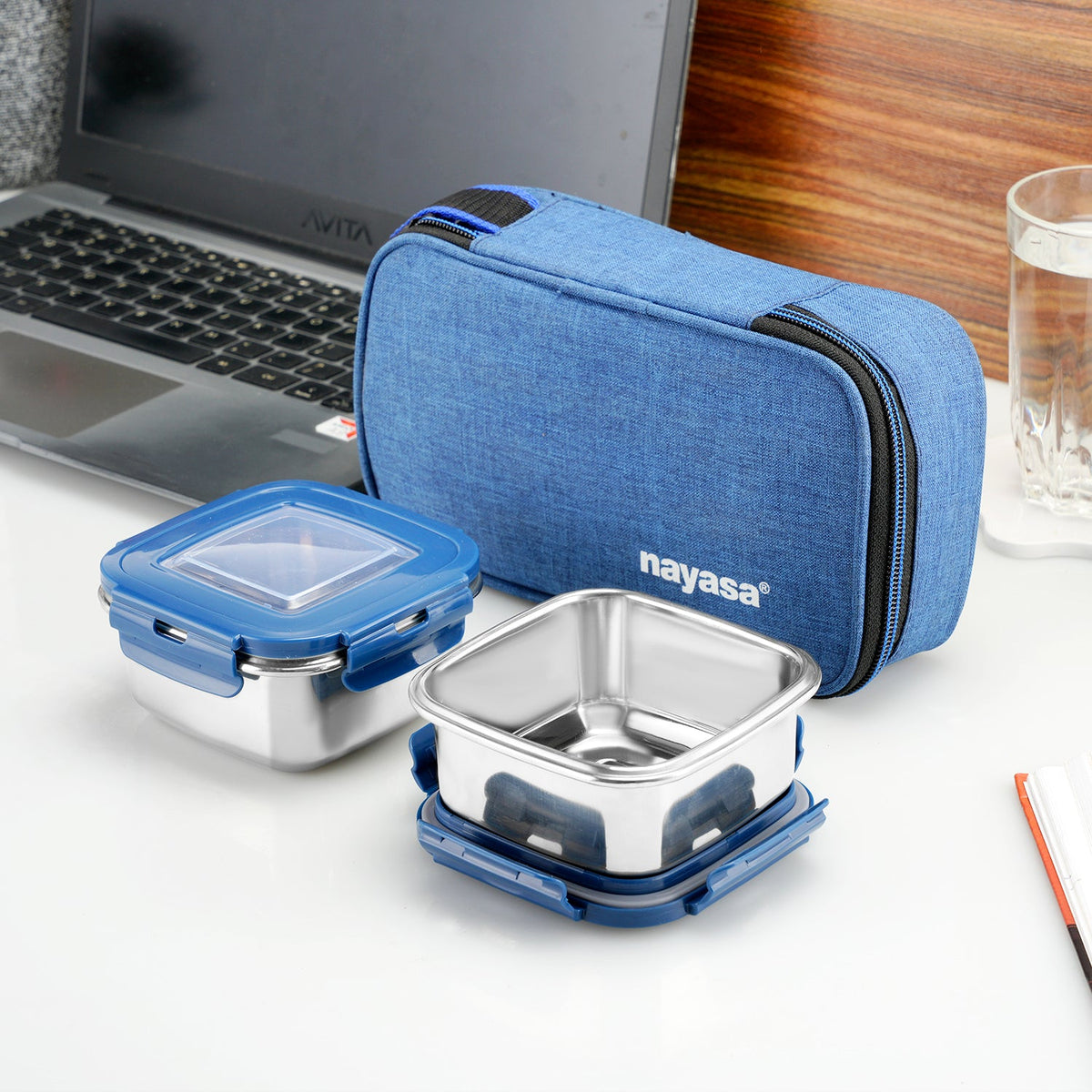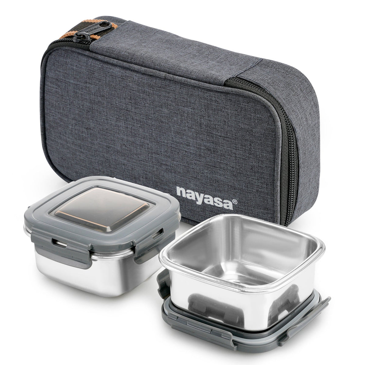 Complete Office Lunch Kit: Includes a zippered pouch and two square stainless-steel containers (300 ml each) for a convenient one-meal solution.