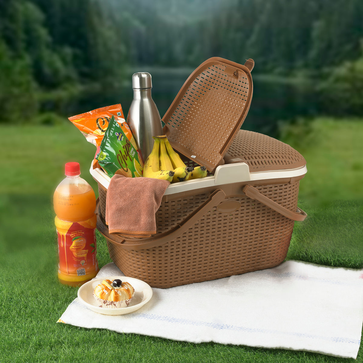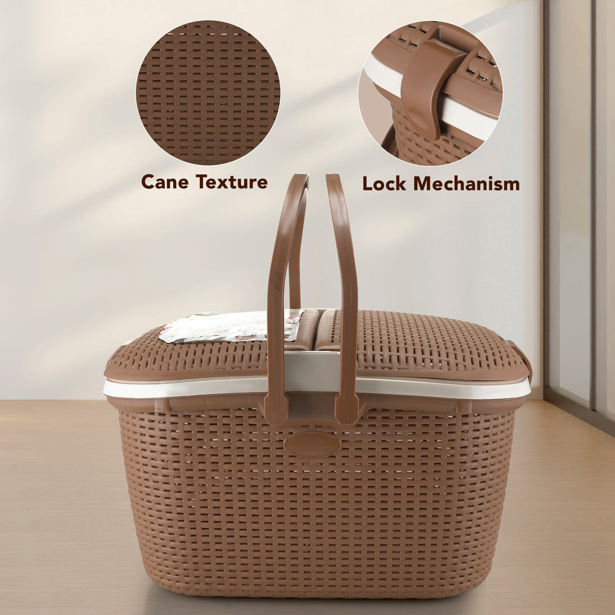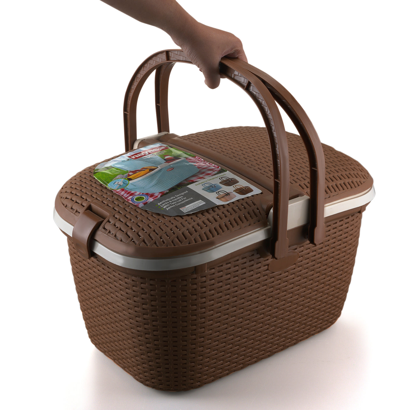 The Nayasa Hamlock Basket blends durability with smart functionality. Made from premium plastic, it features a dual-opening lid and ergonomic handles for ease of use. Ideal for storage, picnics, or travel, it organizes essentials stylishly.