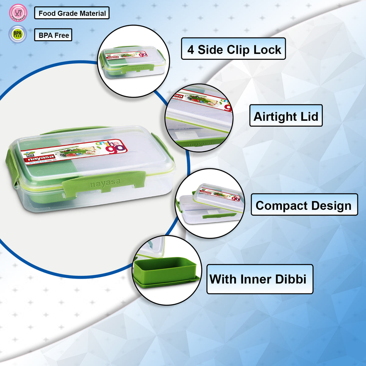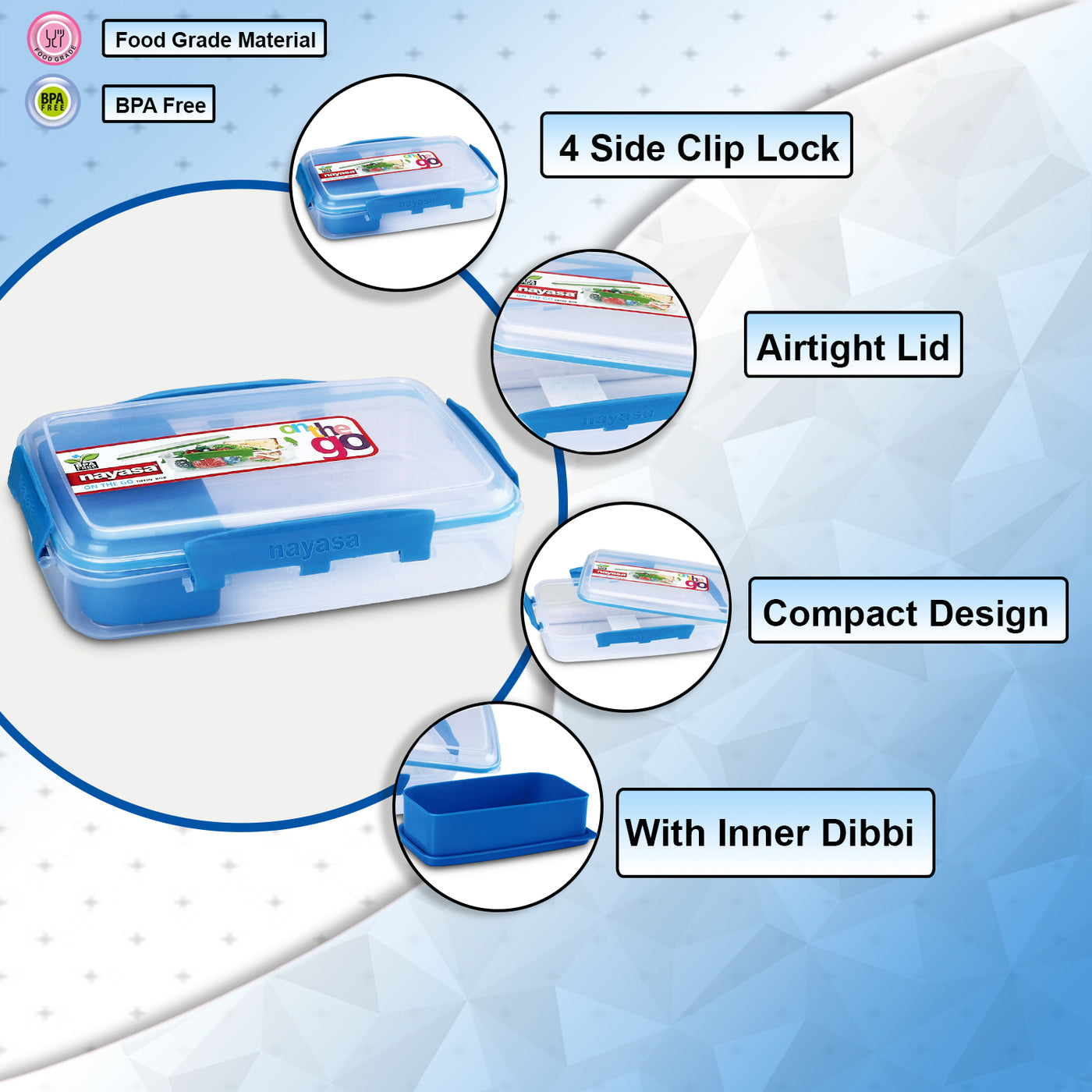 Nayasa On The Go Regular Lunch Box is thoughtfully designed to make mealtime enjoyable for kids. Crafted from premium, food-grade plastic, it keeps food warm, fresh, and safe. The unique upside clip lock and airtight sealing prevent leaks, making it perfect for carrying liquid or semi-liquid dishes. With separate compartments for dry and wet food, and a transparent lid to view meals easily, this tiffin adds both functionality and fun. Lightweight, durable, and easy to carry, it’s ideal for school or travel encouraging kids to eat healthy while enjoying every bite.