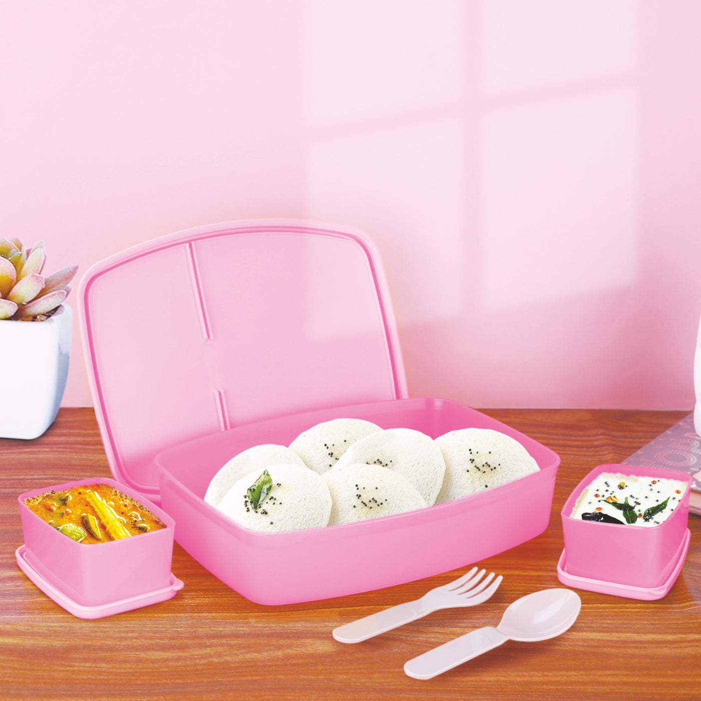 Nayasa Witty Big Regular Lunch Box, Pack of 3, with 2 Inner Containers is made from high-quality, food-grade plastic that keeps meals warm and fresh. Designed specially for kids, this sleek and lightweight lunch box set ensures convenience and hygiene with its airtight and leak-proof design. It includes two inner containers for dry and wet food, making it a perfect choice for school or travel. Soft pastel colors make it appealing for children and encourage healthy eating habits.